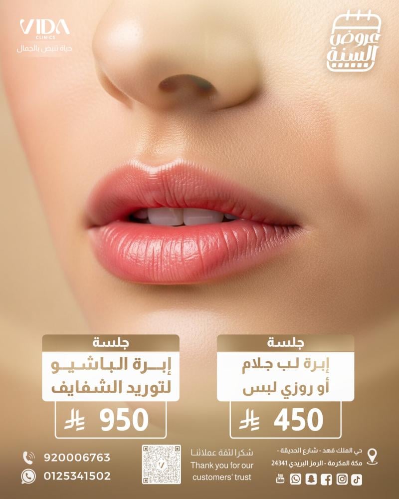 إبر توريد الشفايف هي إجراء تجميلي غير جراحي يهدف إلى تفتيح لون الشفاه الداكنة، استعادة اللون الوردي الطبيعي، وزيادة نعومة وترطيب الشفاه.