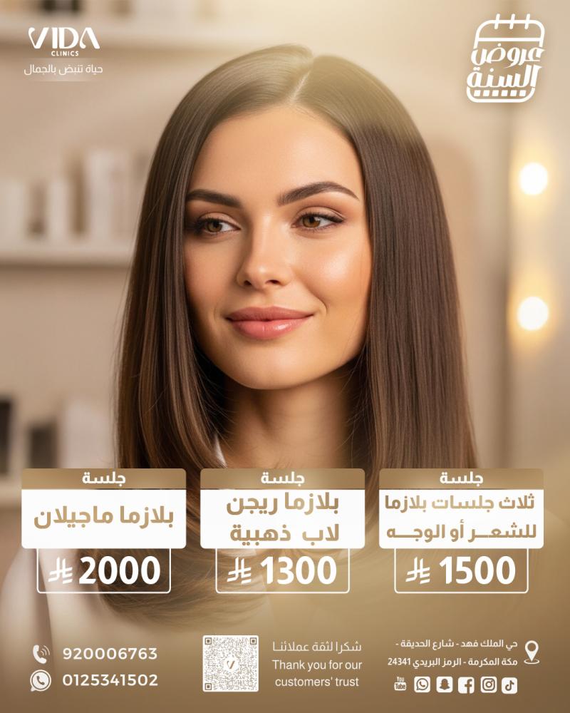 جلسات البلازما للشعر (PRP) + جلسات العناية بالشعر تُعتبر من أكثر الحلول التجميلية فعالية لعلاج تساقط الشعر وزيادة كثافته بشكل طبيعي.